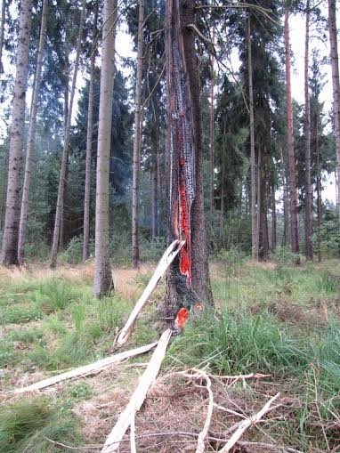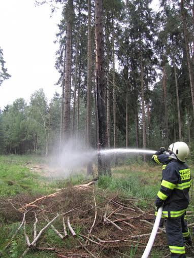 10 / 21.7.2014 - HK, Městské lesy - požár, požár stromu po zásahu bleskem